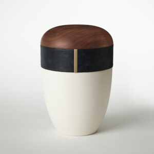 Urna Graphit od společnosti SAMOSA je kombinací moderních přírodních materiálů s klasickými materiály, jako je kůže a dřevo.