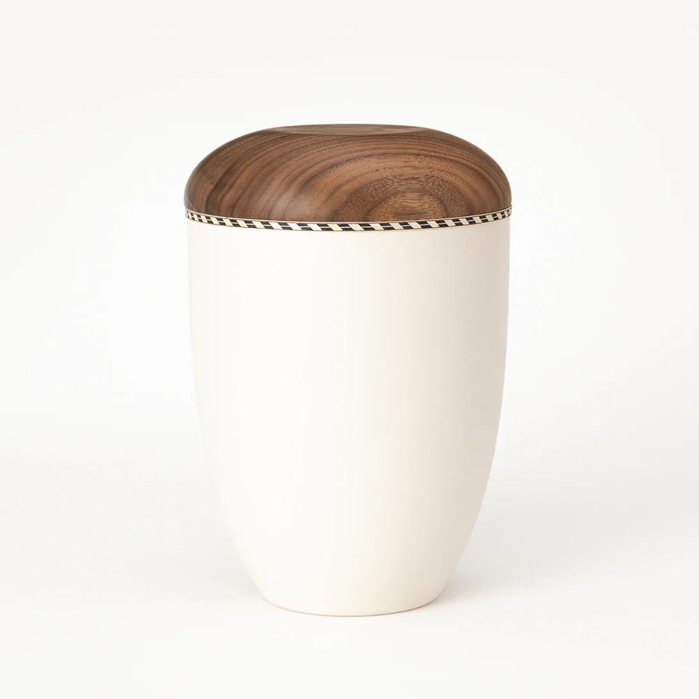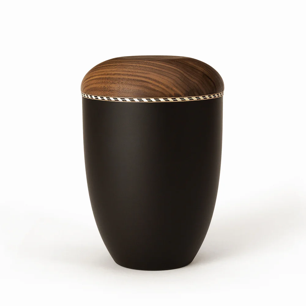 - 🪵 Dřevo (víko urny) – ořechové dřevo a intarzovaný pásek ze tří druhů dřeva