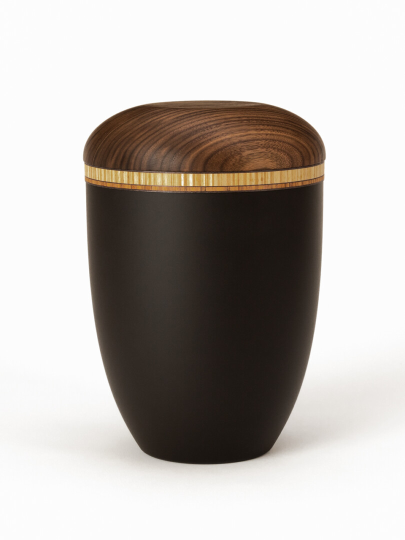- 🪵 Dřevo (víko urny) – ořechové dřevo a intarzovaný pásek
